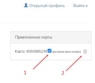 снять галочку "Доступна автооплата" (1). Это заблокирует возможность автоматически списывать с вашей карты оплату